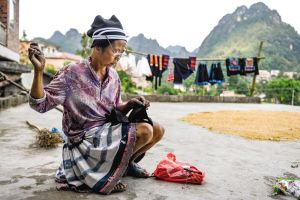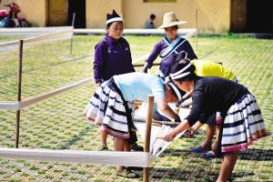 白褲瑤服飾制作需要幾個月的時間,經(jīng)過紡紗、織布、描圖、蠟染、刺繡、縫制等30多道工序,其中許多工序都受季節(jié)和天氣變化的影響。