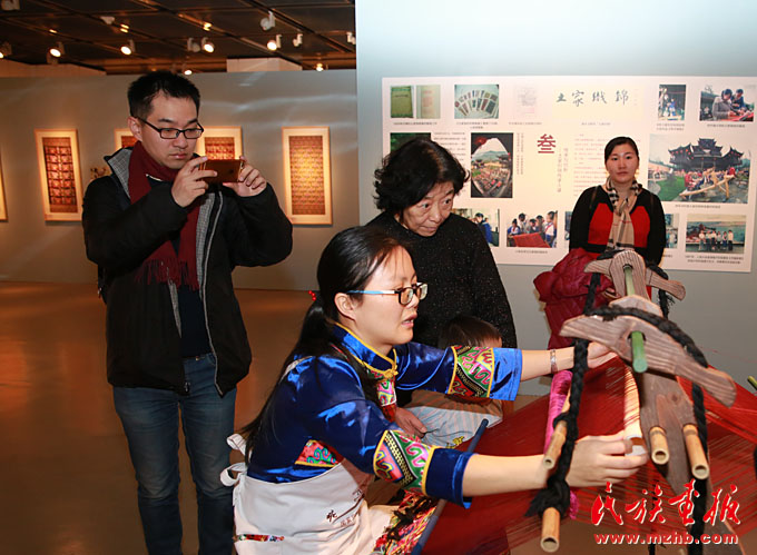 觀眾對土家織錦的制作過程表現(xiàn)出極大的興趣