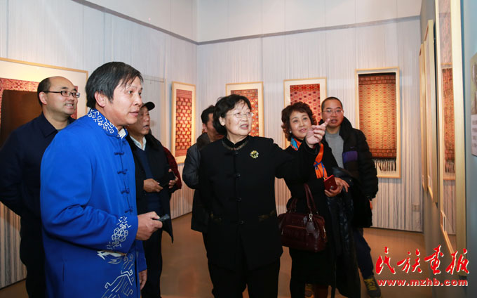 座談會上,中國民族博物館副館長張志文介紹說:土家族是一個古老的民族,有著4000多年的文明發(fā)展史。土家族在全國有2個自治州、8個自治縣,人口達835萬。土家織錦從秦漢時期萌芽,歷經賨布、溪布、斑布、土錦等幾個發(fā)展階段,在明、清時期開始定型,至今已有2000余年的燦爛歷史。中紀委駐財政部紀檢組原組長、全國婦女手工編織協(xié)會副會長賀邦靖說:土家織錦是土家婦女智慧的結晶,是武陵山區(qū)文化精準扶貧的重點項目之一。從這個展覽上我們不僅可以看到土家織錦的燦爛與美麗,還可以看到國家實施文化精準扶貧的實效。