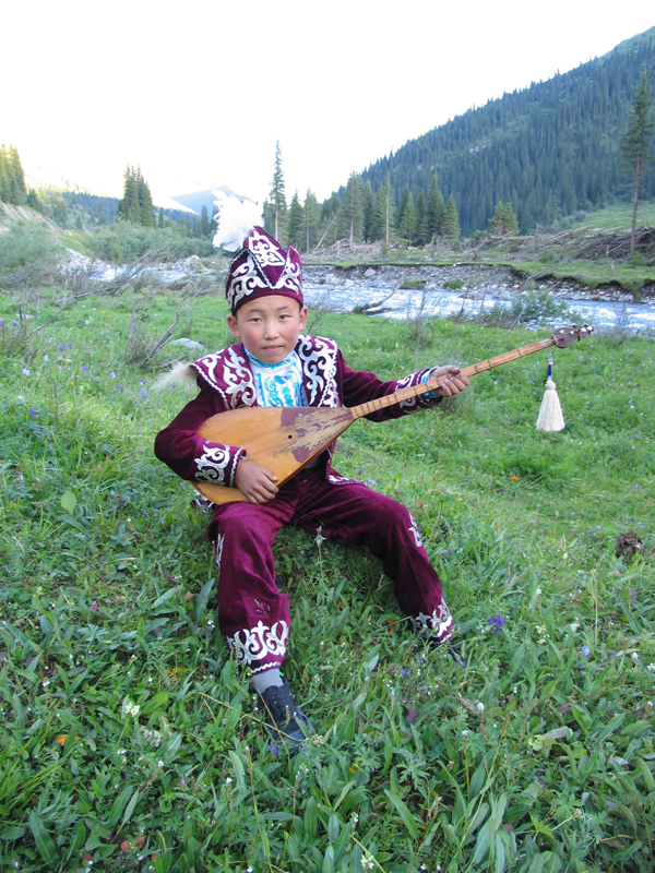 哈薩克族的音樂極具民族特色,樂器種類和樂曲形式也非常豐富?!岸焕睘閺椬鄻菲?,是哈薩克族民間最流行的傳統(tǒng)樂器,分為高、中、低等十幾種。冬不拉易學易帶,深受廣大哈薩克族人民的喜愛。拉奏樂器以“柯布孜”為代表,演奏起來聲音類似小提琴,但形狀要比小提琴復雜,其上端向里彎,琴腹如勺,腹面張開,背面蒙有羊皮,琴弦是用馬尾或牛筋制做而成的。吹奏樂器主要有“斯伯孜俄”,民間藝人喜好并擅長使用此物,被哈薩克族譽為“心笛”。這種樂器外形酷似豎簫,音色悠揚而柔和。哈薩克族的打擊樂器也有很多,極有特色的是“阿迪托亞克”。這種打擊樂器由兩個組成一對,演奏時互相擊打,其外形似馬蹄,加之所奏出的效果也像馬蹄踩在地面上的聲音,哈薩克族稱之為“馬蹄音”。