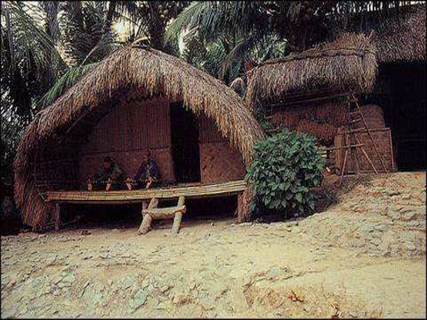 船型屋作為黎族最古老的民居,有高架船型屋與低架(落地式)船型屋之分,其外形像船篷,拱形狀,用紅、白藤扎架,拱形的人字屋頂上蓋以厚厚的芭草或葵葉,幾乎一直延伸到地面上,從遠(yuǎn)處看,猶如一艘倒扣的船。其圓拱造型利于抵抗臺(tái)風(fēng)的侵襲,架空的結(jié)構(gòu)有防濕、防瘴、防雨的作用,茅草屋面也有較好的防潮、隔熱功能。而且能就地取材,拆建也很方便。鑒于這些優(yōu)點(diǎn),船形屋得以世代流傳下來(lái)。