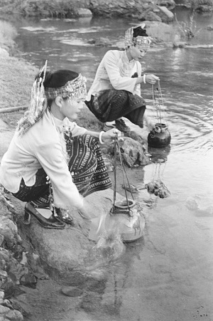 據(jù)說過去的黎家風(fēng)俗是新娘挑滿水缸后,就與新郎、伴娘一起到河里網(wǎng)魚、摸螺。邊摸螺,邊唱山歌。伴娘和姐妹們會把新郎拉來嬉水,伴郎與阿哥們也不甘示弱,也向伴娘和姑娘們嬉水,你澆過來我澆過去,姑娘小伙樂陶陶。因此,保亭黎族嬉水節(jié)便是從婚俗引發(fā)出來的又一歡樂節(jié)日。