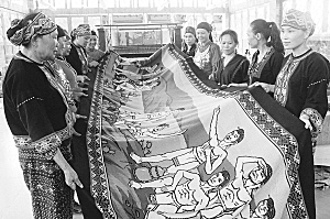 歷時(shí)一年時(shí)間織造,長186.7米黎族民俗風(fēng)情長卷織錦壁掛《錦繡黎家》,日前喜獲上海大世界基尼斯世界紀(jì)錄證書,成為世界織錦項(xiàng)目之最。這幅黎錦長卷由海南省民族研究所織錦工藝研究人員設(shè)計(jì),五指山鑫達(dá)民族織錦旅游開發(fā)中心于2012年4月初,在三亞檳榔河國際鄉(xiāng)村文化旅游區(qū)開始織造工作。