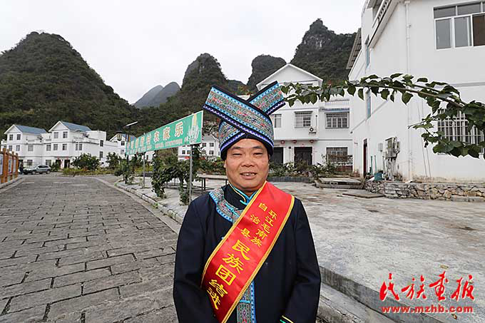環(huán)江毛南族自治縣大安鄉(xiāng)可愛村黨支部書記覃福勇帶領(lǐng)村民移民搬遷進了新村