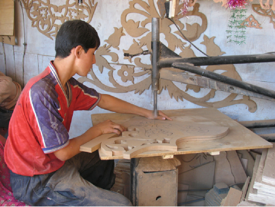 烏孜別克族的木刻加工工藝(劉軍攝)