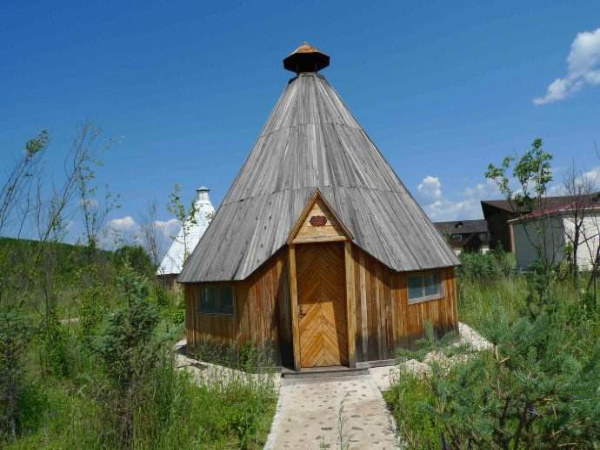 撮羅子的選址,是在地勢較高、陽光能照射到而且水和柴草就近可取的平坦之處。其蓋造方法,是用三五根約碗口粗細(xì)上有枝杈的木桿,相互交合搭成上聚下開的骨架,然后再用30根左右木桿搭在骨架之間捆綁固定,在南面(或東面)留出門,即基本成型。木桿搭起的只是“屋架”,外面還要覆蓋才能遮風(fēng)擋雨。按照季節(jié)的不同,分別用樺樹皮、草簾子和犴、狍等獸皮,做成自上而下一層壓一層的圍子,綁在木桿上,門簾則夏用草或樹條編,冬用狍皮做成。
