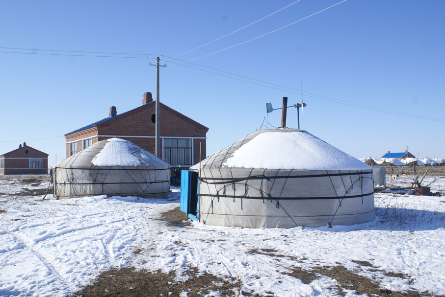 牧區(qū)主要的住房是“蒙古包”,鄂溫克人稱住房為“糾”,分別有“奧布海糾”和“俄儒格糾”。前者是一種形式簡(jiǎn)陋的蒙古包式的住房,一般為打獵、拉腳、打羊草時(shí)的臨時(shí)住房,或?yàn)榻?jīng)濟(jì)困難人家迫不得已時(shí)所居住。建造“奧布海糾”需要二三十根榆木桿子,頂端用繩子結(jié)在一起,下端插進(jìn)地里形成“糾”的架,用葦子搭蓋出呈傘狀的棚房。這種房早期沒有定形的門,一般向南開一小口出入,僅以葦捆及氈子作門。后來“奧布?!币惭b置頂孔,材料是榆木和柳木,鑿出現(xiàn)代蒙古包的包頂。圓頂?shù)倪吘壣香@有小孔,以便插進(jìn)木桿,成錐形。同時(shí)用葦子搭蓋成屋,冬季門里掛上一層氈子防寒。“俄儒格糾”也就是現(xiàn)在所稱的“蒙古包”,因?yàn)閳A孔屋頂而得名。蒙古包的木架是用上、中、下三節(jié)結(jié)構(gòu)組成而成,外面的擋簾根據(jù)季節(jié)不同而樣式不同,夏季采用柳條串成簾圍在包外,用蘆葦串成傘形簾,蓋在上面擋雨。冬季則用帆布外加氈子圍嚴(yán),以保包內(nèi)溫度,近年冬季在包內(nèi)床下搭熱炕。蒙古包一般選在陽(yáng)坡、地勢(shì)較高、用水方便、靠近牧場(chǎng)的地方搭蓋。在搭蓋蒙古包時(shí),雨季要搭得斜度大些,以防漏雨;冬季為免受強(qiáng)風(fēng)吹襲,則搭建的斜度小。蒙古包內(nèi)置有床、爐子,有木箱柜、桌子等用具。近年來,隨著經(jīng)濟(jì)的發(fā)展,住土房、磚房的越來越多。值得一提的是鄂溫克族的牧民雖無固定住所,卻有固定建筑,那就是他們的倉(cāng)庫(kù)。鄂溫克族的倉(cāng)庫(kù)極為奇特:先砍去相鄰兩棵大樹的樹梢,作為柱子,然后用木頭壘出一間懸空的倉(cāng)庫(kù),地上斜豎一根砍有階梯的木柱為梯。倉(cāng)庫(kù)中存放食品、獵物、衣服、用具等。牧民從不上鎖,其他獵人可任意取用,事后如數(shù)歸還即可。