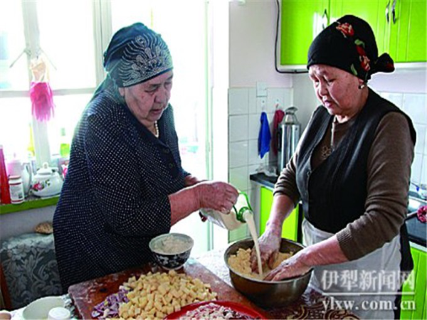 如今,她和姐姐經(jīng)常互相串門,一起做拜列西。做好后,一家人圍坐在一起,喝茶,吃拜列西,聊天?!耙涣钠饋?,就沒個完。”買斯胡旦笑說。采訪當(dāng)日,她即把姐姐邀來,跟她一起做塔塔爾族的這種傳統(tǒng)食物。