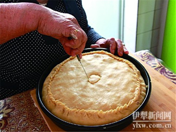 拜列西是塔塔爾族的一種傳統(tǒng)美食。68歲的買斯胡旦·熱合木是伊犁州級非遺項目塔塔爾族拜列西制作技藝的傳承人。她告訴記者,塔塔爾族家里來客人的時候,用餐程序往往分為三步:先上茶;其次,端來用肉湯煮的面,同時奉上煮熟的肉塊;接著,再擺上各式各樣的菜,其中,就有拜列西。