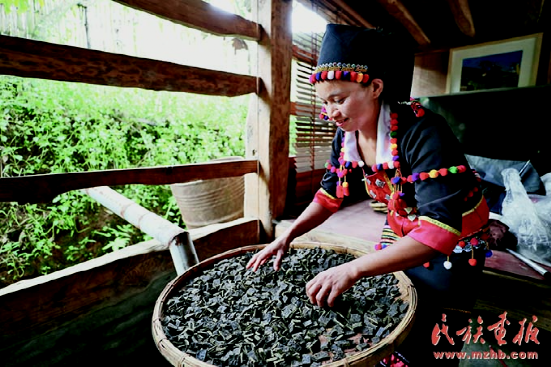 德昂族是一個(gè)有悠久種植茶樹(shù)和飲茶歷史的民族。圖為趙臘退家的酸茶工作室。