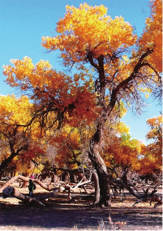 胡楊是當(dāng)今世界上最古老的楊樹(shù)品種,被譽(yù)為活著的化石樹(shù)。據(jù)說(shuō)胡楊樹(shù)活著一千年不死、死后一千年不倒、倒后一千年不朽。錚錚鐵骨千年鑄,不朽品質(zhì)萬(wàn)年頌。四子王旗境內(nèi)生長(zhǎng)著我國(guó)第三片胡楊林,千百年來(lái)它們矗立北疆,守護(hù)著大漠邊關(guān),被當(dāng)?shù)啬撩褡u(yù)為大漠守護(hù)神。
