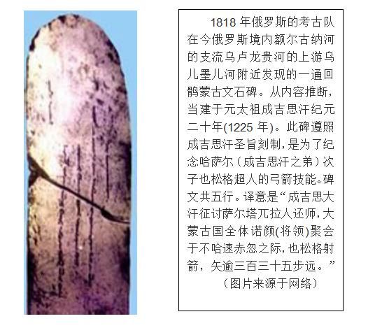在成吉思汗叱咤風(fēng)云的時(shí)代,中國北方與宋王朝并立先后存在過西夏、遼、金、蒙古等少數(shù)民族政權(quán)。這些政權(quán)的主體民族,西夏國的黨項(xiàng)、遼國的契丹、金國的女真、蒙古國的蒙古,都有本民族語言,最初都沒有本民族文字。建立政權(quán)后,為了適應(yīng)政治和文化發(fā)展的需要,他們有的創(chuàng)立了本民族文字,如西夏文、契丹字、女真字等等。回鶻西遷之前,與蒙古共同生活在蒙古高原,他們都是游牧民族,經(jīng)濟(jì)文化與許多相似性,語言上同屬阿爾泰語系,分屬蒙古語族和突厥語族,因此蒙古語與維吾爾語的一些日常用語和詞匯是相同或相近的。如黑(哈喇)、黃(霞喇)、金(阿拉泰)在蒙古語與維吾爾語中發(fā)言是一樣的。成吉思汗命塔塔統(tǒng)阿用回鶻字母創(chuàng)建蒙古文字,就是在這樣的時(shí)代背景和回鶻、蒙古的文化聯(lián)系上產(chǎn)生的?,F(xiàn)存用回鶻式蒙古文寫成的文獻(xiàn)中,最早的是1225年的《也松格碑》(成吉思汗石碑)。