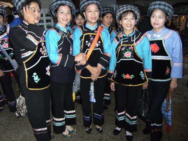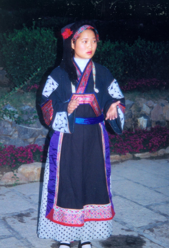 西南地區(qū)的服飾分布地區(qū)包括貴州省黔南布依族苗族自治州羅甸,黔西南州望謨、冊(cè)亨、貞豐、安龍、興義、興仁、安順市的鎮(zhèn)寧、關(guān)嶺、紫云三縣的南部以及云南省羅平等縣(市),基本上都屬于布依語(yǔ)第一土語(yǔ)區(qū)。這個(gè)地區(qū)婦女普遍穿大襟衣、長(zhǎng)褲腳。衣服的盤(pán)肩、袖口、襟沿鑲有蘭干。褲腳為大褶邊,或藍(lán)色褲腳鑲一截青布和蘭干。衣服的長(zhǎng)短和褲腳的大小,各地區(qū)都不相同。冊(cè)亨一帶衣服較短,褲腳短小,包花格長(zhǎng)帕,胸頸掛彩珠項(xiàng)圈,手套玉石或骨制手鐲;望謨一帶青年婦女把花格帕折疊后纏戴;貞豐一帶的衣服較長(zhǎng),褲腳不折邊,青年和老年婦女基本相同,但青年婦女包的花帕形狀如牛角(人稱(chēng)“牛角帕”);靠近北部地區(qū),衣褲都較長(zhǎng),而且不鑲蘭干,衣褲和帕子多為青色;安龍、興義一帶則多包白帕,衣褲亦不鑲蘭干;西南一帶地區(qū)衣褲已漸不鑲蘭干,但還穿自織的土布衣服,頭上還包花格帕,一些地區(qū)與漢族婦女裝束完全一樣了。