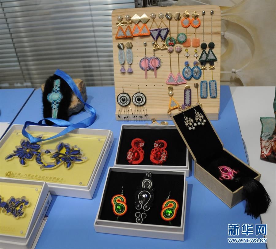 參與“布絲瑰行動(dòng)計(jì)劃”的婦女制作的十二生肖主題盤(pán)扣。(新華社記者勿日汗 攝影)