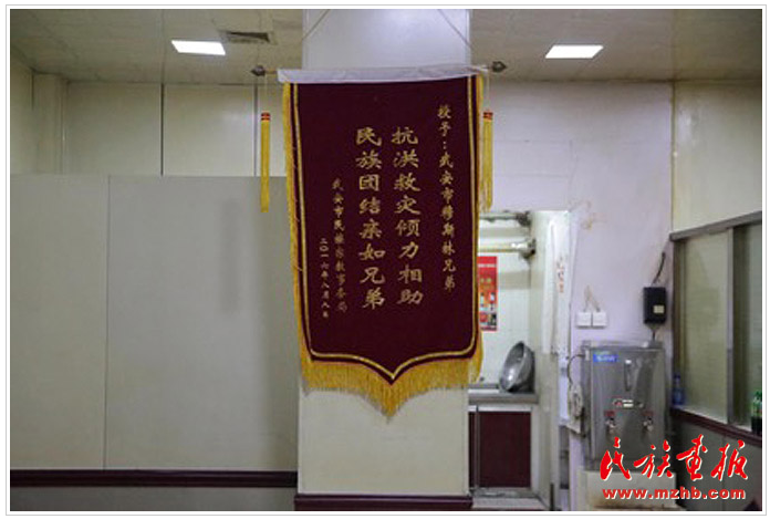 楊勇智在冒著熱氣的羊湯店中向記者回憶起了2016年7月19日那天武安爆發(fā)洪災(zāi)的事情。當(dāng)天他第一時(shí)間組織了周圍的群眾和穆斯林朋友們進(jìn)行抗洪救援的事情還歷歷在目。他說(shuō),民族之間的團(tuán)結(jié)在任何地方都是一股力量。為此,武安市民族宗教事務(wù)局對(duì)楊勇智的行為給予了極大的肯定,并將“抗洪救災(zāi)傾力相助,民族團(tuán)結(jié)親如兄弟”的錦旗贈(zèng)予楊勇智和他的穆斯林朋友們。