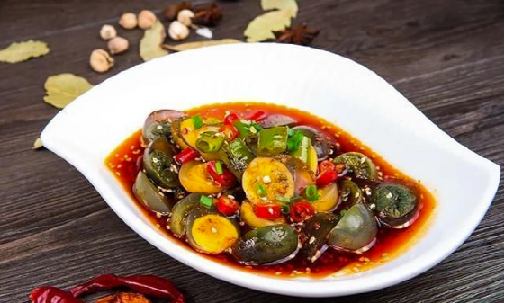 第二就是松花皮蛋。它是用新鮮鴨蛋加工腌制而成的一種生吃食品,因?yàn)榻?jīng)過了腌制加工,所以蛋清和蛋黃凝固靜皮,剝開不粘蛋殼,且富有彈性,所以簡稱為“皮蛋”。