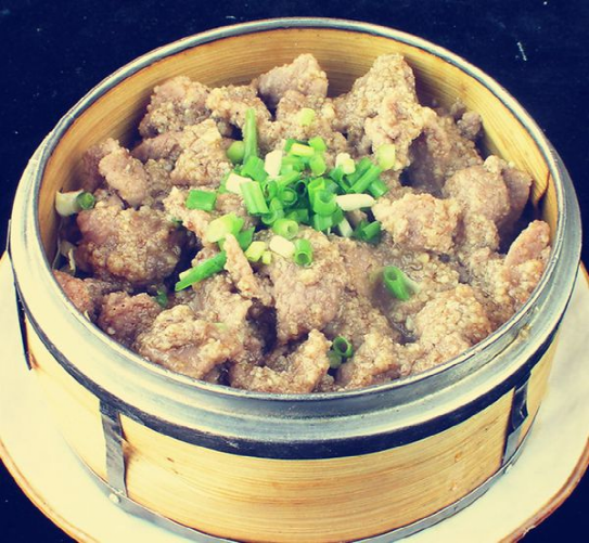 粉蒸肉以肉為主料,采用米粉和其他調(diào)味料制作而成。粉蒸肉糯而清香,酥而爽口,有牛肉、排骨、豬舌、牛肚、肥腸、羊肉等不同選擇,味道也根據(jù)個(gè)人喜好在辣椒碟中添加醋、糖、麻油等調(diào)味料,粉蒸肉味道鮮美、口感松軟、回味無窮。