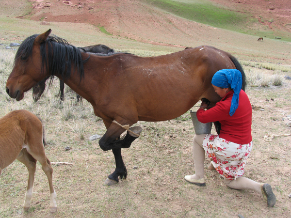柯爾克孜人民的日常飲食來(lái)源之一——馬奶(劉軍攝)