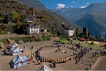 古碉下舉行傳統(tǒng)的女子成人禮儀式