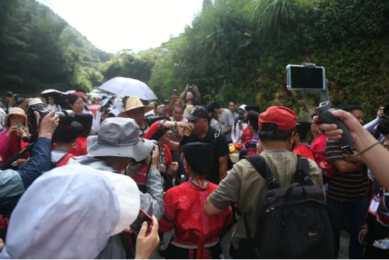 曬衣節(jié)當(dāng)天還進(jìn)行了嗩吶鑼鼓迎賓、瑤嫂長發(fā)梳妝展示、“抬金狗”送祝福、紅瑤服飾加工展示、紅瑤集體婚禮等活動,豐富多彩的民俗文化、濃郁的民族風(fēng)情,讓各地游客流連忘返。