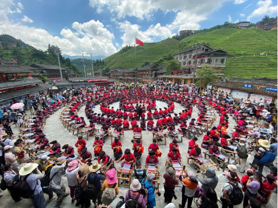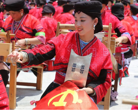 2014年,龍勝瑤族服飾(紅瑤服飾)以其精湛的手工藝和文化底蘊入選國家級非物質(zhì)文化遺產(chǎn)代表性項目名錄擴展項目名錄。如今的“曬衣節(jié)”已不僅是紅瑤的傳統(tǒng)佳節(jié),“農(nóng)歷六月六,廣西龍脊看紅衣”等曬衣節(jié)系列活動已成為桂林山水游的一張名片,讓各地游客充分感受多姿多彩的民族風(fēng)情。紅瑤同胞們用自己獨特的方式,為中國共產(chǎn)黨成立100周年獻(xiàn)上自己的祝福。
