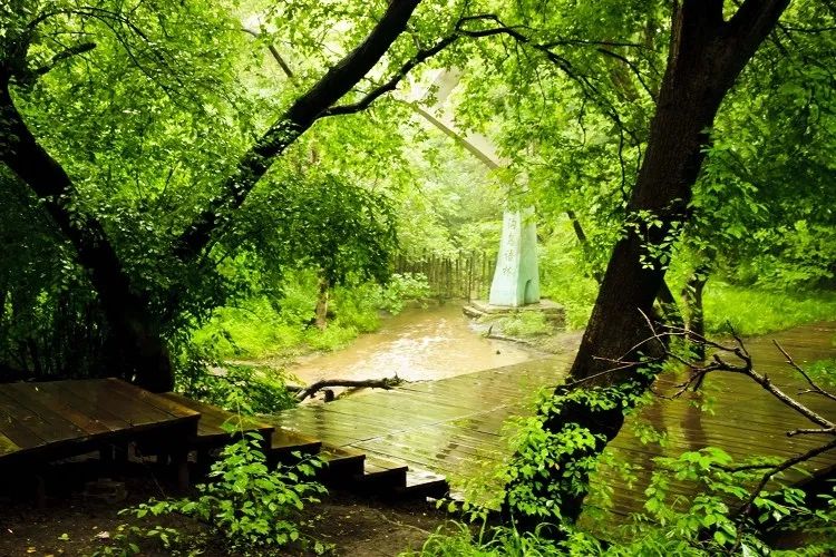 沙?,F(xiàn)芳洲,草茂花稠。參天古木鳥啁啾。溪水涓涓吟四季,海內(nèi)獨幽。不再走石頭,難見沙流。風(fēng)清水碧韻悠悠。神女降妖佳話在,景壯千秋。
