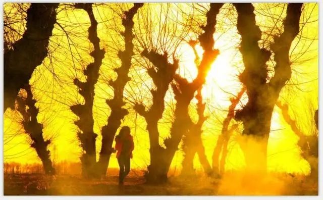 青蔥一段。是那些仙柳,年年綠遍。親瞻始信天工巧,看神態(tài)虬然,巨身如蜿。雕成寂寞,慣倚風(fēng)沙思念。放眼,在芳陌之間,碧河之畔。癡懷不共斜陽挽,有歸鳥纏綿,與它相戀。根生大漠,情系這般遼遠(yuǎn)。