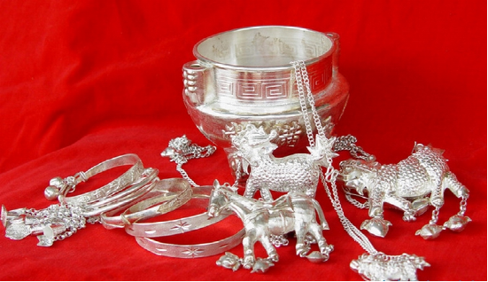 從唐、宋以來,隨著中原文化和先進(jìn)生產(chǎn)技術(shù)的傳入,極大的促進(jìn)了云南廣南地方民族經(jīng)濟(jì)的發(fā)展,民族銀飾工藝品應(yīng)用而生。據(jù)《云南少數(shù)民族》一書載:“各地區(qū)壯族支系都有自己的鐵匠,銀匠,技術(shù)都頗高明”?!案欢级鷫嬨y環(huán)”?!胺惨戮傆秀y鈕扣和繡有花邊圖案”。廣南的民族銀飾品生產(chǎn)歷史久遠(yuǎn),佩戴銀飾品成為富有的象征,愛美的標(biāo)志。隨著生活水平的提高,市場需求不斷增大,廣南縣民族銀飾工藝廠生產(chǎn)的產(chǎn)品有手鐲、項(xiàng)鏈、轉(zhuǎn)腰鏈、耳環(huán)、戒指、鈕扣、銀筷銀杯、銀包煙筒等上百個(gè)產(chǎn)品。1989年時(shí),被第十一屆亞運(yùn)會(huì)指定生了26個(gè)品種共826件的銀飾品。