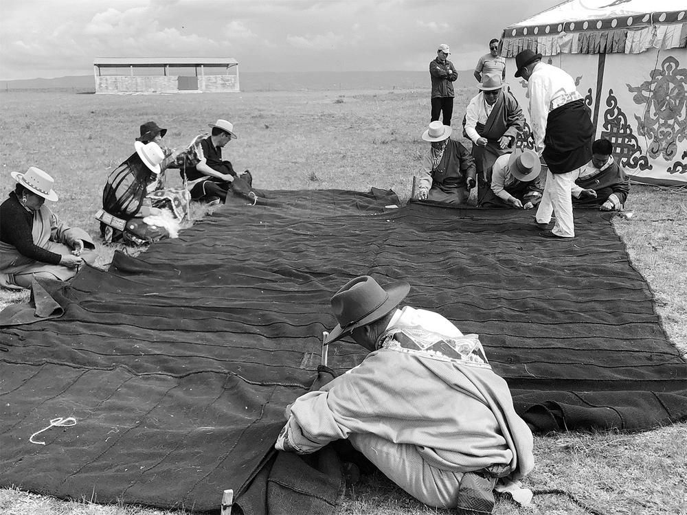 青海藏族黑牦牛帳篷制作技藝已有一千五百多年的歷史,它是藏族牧人主要的住家形式,在漫長(zhǎng)的游牧歷史中,在艱苦的歲月中,黑牦牛帳篷給藏族牧民群眾賜予溫暖。青海藏族黑牦牛帳篷制作技藝主要分布在天峻縣新源鎮(zhèn)、木里鎮(zhèn)、江河鎮(zhèn)、蘇里鄉(xiāng)、龍門鄉(xiāng)、舟群鄉(xiāng)、織合瑪鄉(xiāng)、快爾瑪鄉(xiāng)、生格鄉(xiāng)、陽康鄉(xiāng)等地區(qū)。千百年來,當(dāng)?shù)啬撩袢罕娭鹚荻?,在冬、夏季牧?chǎng)來往遷徙,黑帳篷因攜帶方便,質(zhì)地厚重,冬暖夏涼,防風(fēng)防寒、防雨防曬性能強(qiáng),成為牧民生活中不可缺少的重要生活用具。