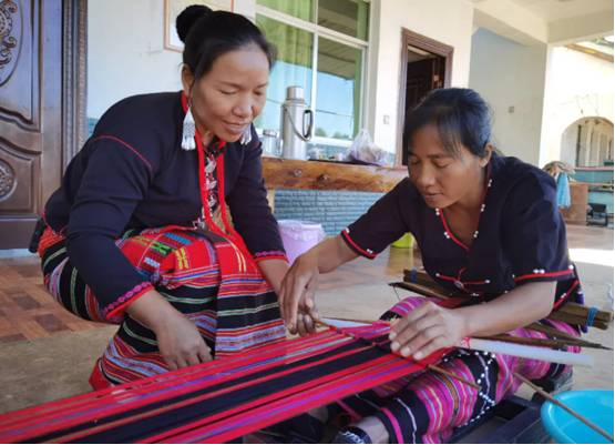 守住佤族織錦傳承的同時(shí),也要讓佤族織錦呈現(xiàn)出蓬勃生機(jī)。西盟縣以“培訓(xùn)+就業(yè)+服務(wù)”一體化的農(nóng)村勞動(dòng)力轉(zhuǎn)移培訓(xùn)模式,對(duì)佤族織錦手工藝人進(jìn)行技術(shù)培訓(xùn),提高她們的專業(yè)水平和可持續(xù)發(fā)展意識(shí)。培訓(xùn)范圍覆蓋西盟縣5鎮(zhèn)2鄉(xiāng),直接或間接為西盟縣2000余名貧困戶帶來了就業(yè)機(jī)會(huì),每人每年人均收入達(dá)6400元以上。同時(shí),西盟縣還給予傳承人政策和專項(xiàng)資金的支持,鼓勵(lì)她們帶徒授藝。