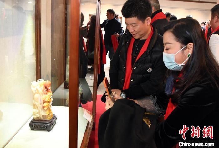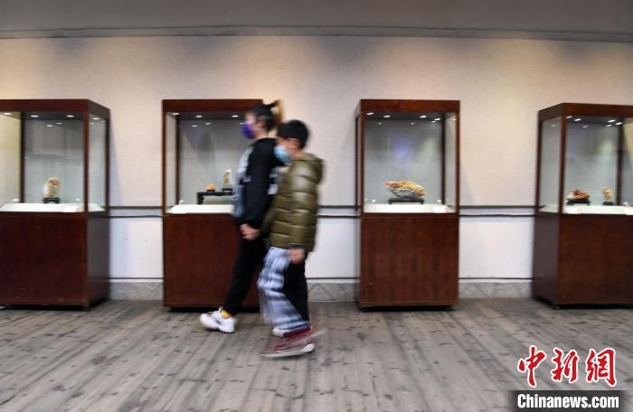 中國(guó)工藝美術(shù)大師葉子賢壽山石雕傳承展吸引觀眾觀看。 記者劉可耕 攝