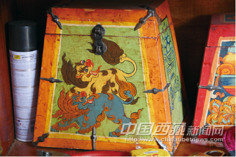 藏式家具上的特色繪圖,陳舊的用色方式完美地展現(xiàn)了悠久的文化內涵。
