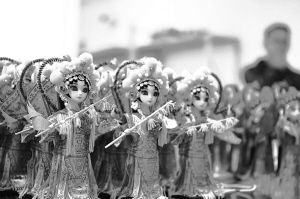 據貴州盛華職業(yè)學院唐人坊非物質文化遺產傳承學院副院長秦貞錚介紹,“唐娃娃”全都是手工制作,十分復雜,完成一個娃娃可能要經過上百道工序?!啊仆尥蕖母叨入m然只有30厘米,但這些人物穿的衣服幾乎是京劇劇裝的原樣縮小版。它們的妝容都是手畫的,頭發(fā)也是手工盤上去的,帽子采用傳統掐絲工藝?!?/p>