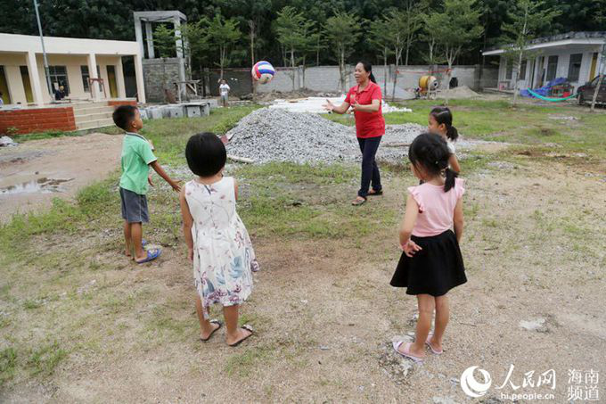 王金花在番打小學與孩子們一起玩耍