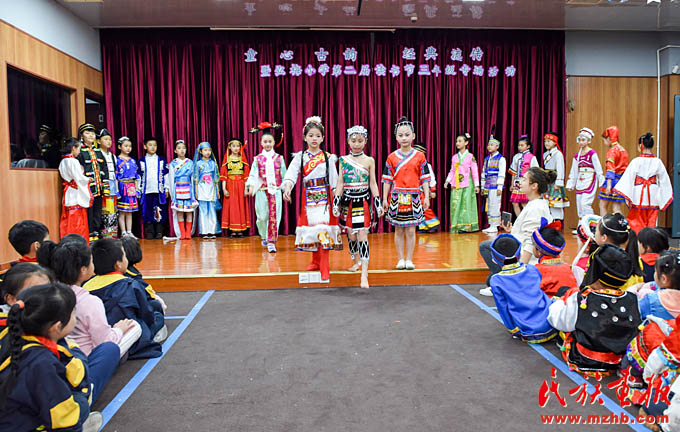 同一天下午,一場(chǎng)精彩的T臺(tái)秀在上海市閔行區(qū)梅隴鎮(zhèn)弘梅小學(xué)上演。小學(xué)生們身著民族服裝亮相,動(dòng)感的音樂(lè)、精彩的表演,將“民族團(tuán)結(jié)一家親”的理念演繹得生動(dòng)活潑。學(xué)校布置的民族文化墻上,展示了我國(guó)56個(gè)民族的風(fēng)土人情,營(yíng)造了多姿多彩的民族文化氛圍,讓民族特色文化陪伴在學(xué)生身邊。
