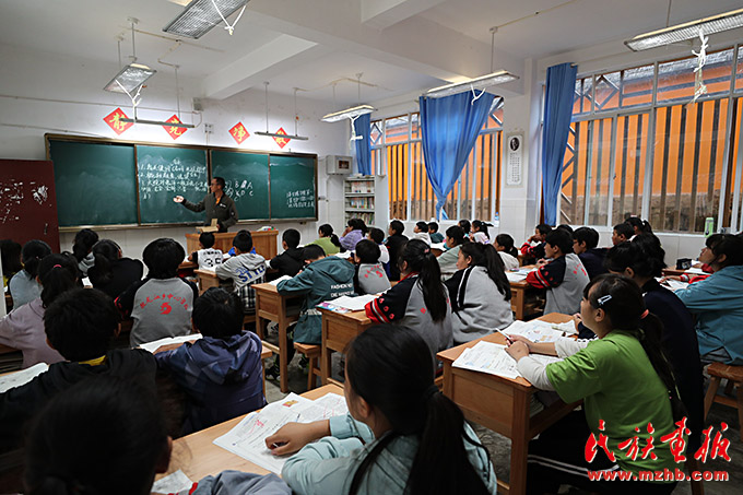 “對(duì)于一個(gè)在北平住慣的人,像我,冬天要是不刮大風(fēng),便覺得是奇跡;濟(jì)南的冬天是沒有風(fēng)聲的?!弊哌M(jìn)學(xué)校初中部,朗朗書聲立即傳入耳中,七年級(jí)一班學(xué)生正在老師的帶領(lǐng)下大聲朗讀我國(guó)著名作家、劇作家、小說家老舍創(chuàng)作的散文《濟(jì)南的冬天》。獨(dú)龍江九年一貫制學(xué)校校長(zhǎng)楊四洋對(duì)記者說:“習(xí)近平總書記曾深刻指出:少數(shù)民族學(xué)好國(guó)家通用語言,對(duì)就業(yè)、接受現(xiàn)代科學(xué)文化知識(shí)、融入社會(huì)都有利。所以我們學(xué)校從成立之初就開始推行國(guó)家通用語言文字教育,如今每一個(gè)在校學(xué)生都能講出一口流利的普通話。獨(dú)龍族聚居地地處深山峽谷,自然環(huán)境惡劣。學(xué)好國(guó)家通用語言文字對(duì)我們的孩子尤為重要,這樣才能更好地建立與外界溝通的橋梁?!?/p>