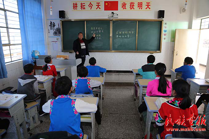 臘灣民族小學(xué)是牟定縣海拔最高的小學(xué),這里環(huán)境艱苦,但是來這里的老師都堅(jiān)持了下來。明艷紅老師2011年從楚雄師范學(xué)院畢業(yè)后,來到了臘灣民族小學(xué)。6年時(shí)間彈指一揮,她沒有被艱苦閉塞的環(huán)境嚇倒,反而更加熱愛這份工作?,F(xiàn)在,她帶五年級(jí)數(shù)學(xué)課。她說:“在國家對(duì)民族教育的大力支持下,臘灣民族小學(xué)的辦學(xué)條件有了很大改善,給我們老師蓋了單身宿舍,現(xiàn)在吃的、住的都很好。我們的工資還比縣里條件好的學(xué)校高出1000多元?!痹诓稍L中我們得知,李有順老師原來是臘灣民族小學(xué)的老校長,作為本地人,他在臘灣民族小學(xué)工作快30年了,校長就干了17年。他說:“現(xiàn)在歲數(shù)大了,精力不夠充沛了,校長得讓年輕人干,這樣才能保持辦學(xué)有創(chuàng)新?!崩钣许槹研iL一職傳遞給了30多歲的李發(fā)庭。去年剛剛接過“接力棒”的李發(fā)庭表示:“壓力很大,但一定不能辜負(fù)鄉(xiāng)親們和老校長的期望?!?/p>