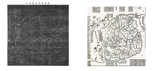 唐代地理學(xué)家賈耽采用裴秀制圖法組織畫工繪制《海內(nèi)華夷圖》,幅面約十平方丈,古今對照,雙色繪畫,注重少數(shù)民族部分,是巨幅唐代中國全圖?!哆M海內(nèi)華夷圖及古今郡國縣道四夷述表》云:“唐臣聞地以博厚載物,萬國棋布;海以委輸環(huán)外,百蠻繡錯。中夏則五服九州,殊俗則七戎六狄,普天之下,莫非王臣?!?宋代《華夷圖》被簡化成縱橫各約80厘米,刻于《禹跡圖》背面;圖上不畫方格,有山脈、河流、長城和各州的名稱,其位置大體與實際相近。山脈用人字形表示,河流為單曲線;河流名稱注記在河源處,囊括眾多異族名稱。西安碑林博物館這塊作為印刷用的兩面刻有地圖的石版,是中國現(xiàn)存最早的石版地圖。唐代巨幅彩繪《海內(nèi)華夷圖》和宋代石刻《華夷圖》不僅標(biāo)志著中世紀(jì)中國制圖學(xué)上最高成就,而且是中國多民族國家的象征。