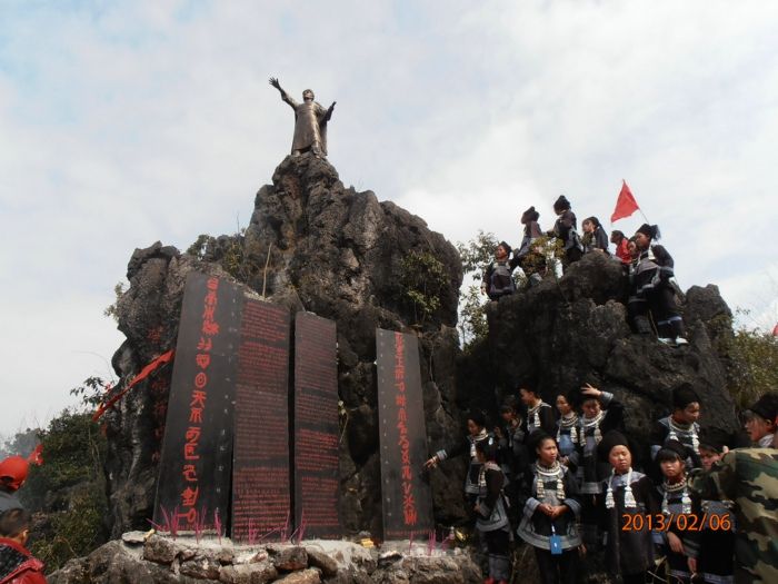 水族農(nóng)民起義抗清英雄潘新簡的塑像在三都水族自治縣九阡鎮(zhèn)水梅村的岜碉山上矗立。