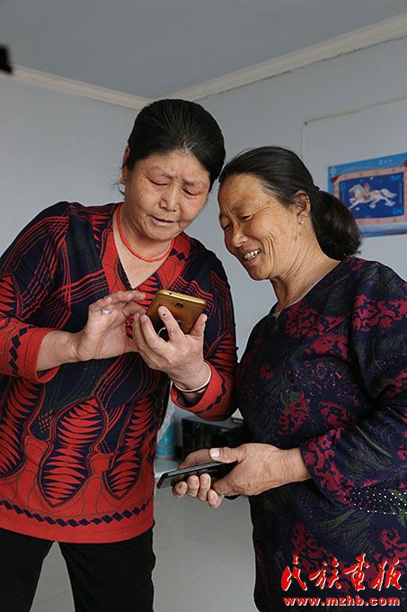 莎仁其其格(左)通過“國家的孩子”微信群和朋友保持密切聯(lián)系。