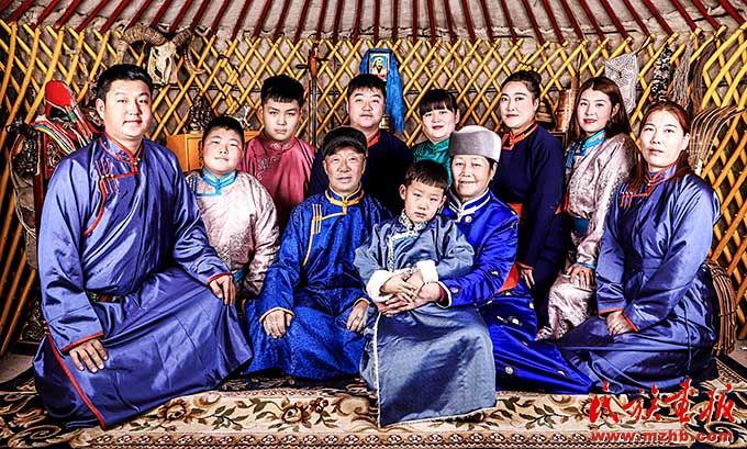 三代同堂的莎仁其其格一家。