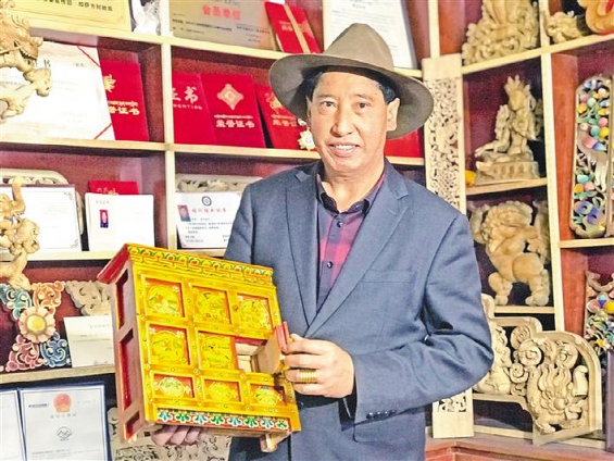 2018年,他被評(píng)為拉薩市非物質(zhì)文化遺產(chǎn)項(xiàng)目“拉薩木雕技藝”市級(jí)代表性傳承人。
