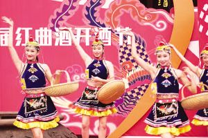 龍峰村“紅曲酒開(kāi)酒節(jié)”上的畬族歌舞表演。黃宗治攝