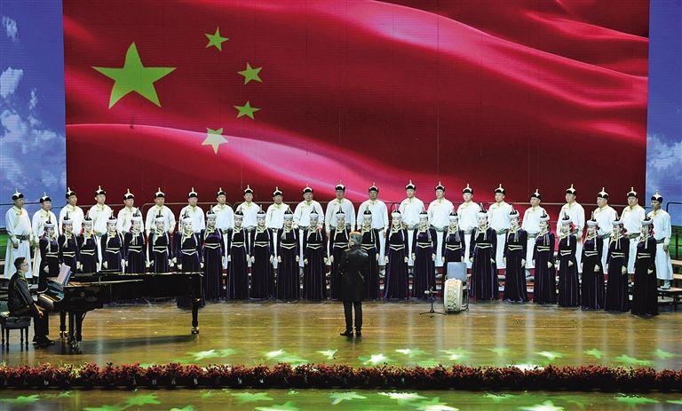 內(nèi)蒙古民族藝術(shù)劇院蒙古族青年無(wú)伴奏合唱團(tuán)演唱《鴻雁》。