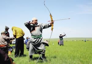 射箭是借助弓的彈力將箭射出,分為射遠(yuǎn)、射準(zhǔn)。最早用來(lái)狩獵,之后用于戰(zhàn)爭(zhēng),最后才成為體育運(yùn)動(dòng)。在蒙古高原的很多巖畫里,都有射箭的圖案。與馬的馴服使用一樣,弓箭的使用增加了人類征服自然的威力和自信。