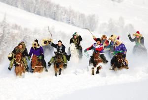 新疆維吾爾自治區(qū)喀納斯冬季那達(dá)慕賽馬。 陳嶺攝