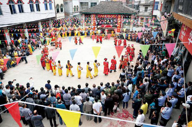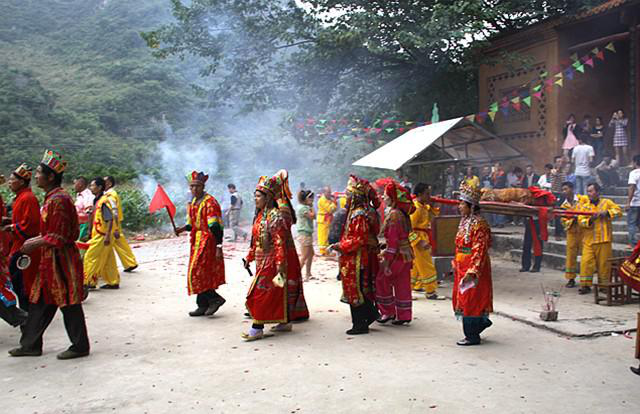 在酬謝自然之神后,由祭司念誦祭文,紀(jì)念民族英雄瓦氏夫人,頌揚(yáng)瓦氏夫人率領(lǐng)將士打擊倭寇的英雄事跡,傳授民族歷史知識(shí),宣揚(yáng)保衛(wèi)家園、謀求平安的民族精神。