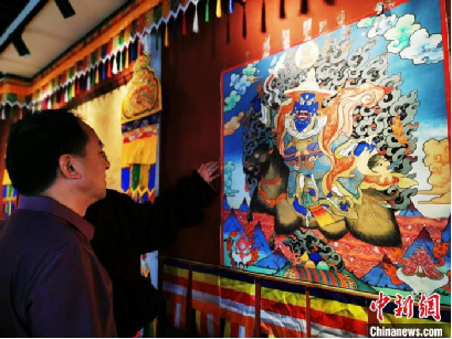 圖為久美尖措創(chuàng)作的藝術(shù)品?!?zhí)砀?攝