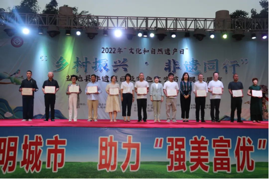 演出開始前公布了第四批縣級非物質文化遺產代表性項目及第三批鹽池縣級非物質文化遺產代表性傳承人名錄,并為代表性項目和傳承人頒發(fā)牌匾及證書。