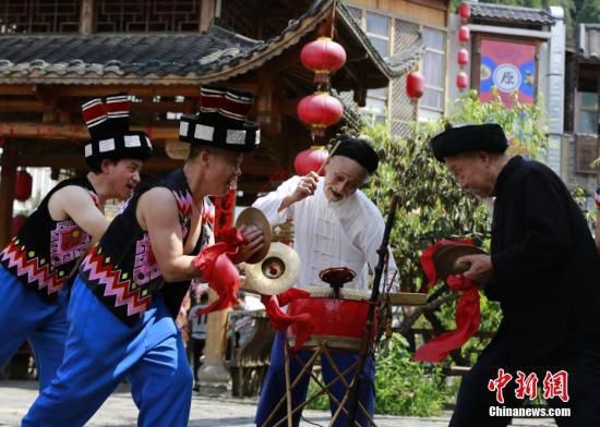 毛方明的父親毛開善告訴中新社記者,土家族撒葉兒嗬以前只在白事期間進行表演,如今隨著時代變化,已逐漸趨于常態(tài)化。